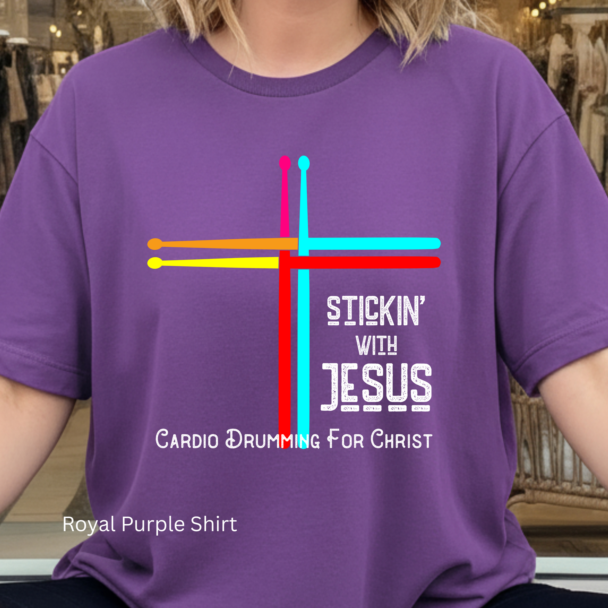 Get ready to praise the Lord while breaking a sweat with our Stickin' With Jesus Cardio Drumming T-Shirt. Made using a high-quality Bella Canvas soft t shirt, you'll be comfortable and stylish while spreading the word of God. Praise Him with every beat!